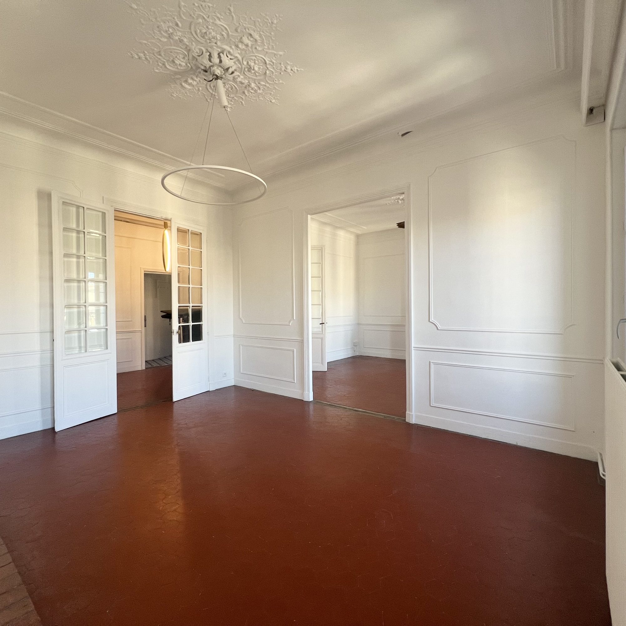 Au c?ur du centre ville de Marseille, dans le 1er arrondissement, cet appartement se trouve au dernier étage d'un immeuble ancien, caractérisé par une belle hauteur sous plafond. Sa position élevée offre une belle lumière et une vue dégagée. D'une superficie de près de 110m2, l'appartement propose une pièce de vie spacieuse réunissant salon et salle à manger, une cuisine, un cellier. L'espace nuit se compose de trois chambres, dont deux suites parentales avec salle d'eau et salle de bain. Un bureau complète l'espace.
