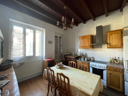 Maison de village en pierre et galet d'environ 100 m2 habitables sur 2 niveaux avec dépendance de 80 m2 et terrain attenant de 4760 m2. Le rez-de-chaussée est composé d'une cuisine aménagée, d'un salon de 22 m2 orienté sud-ouest et d'un sanitaire. Trois chambres, un dressing et une salle de bains sont à l'étage. Une belle dépendance de 80 m2 au sol jouxte l'habitation, avec une cave et un parking extérieur. La parcelle se situe derrière la maison avec une partie en noyeraie. - Annonce rédigée et publiée par un Agent Mandataire -