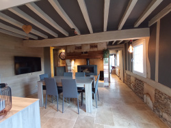 A 15 MINUTES DU NEUBOURG, BELLES PRESTATIONS POUR CETTE CHARMANTE CHAUMIERE OFFRANT : AU REZ-DE-CHAUSSEE : ENTREE DONNANT SUR UNE CUISINE AMENAGEE ET EQUIPEE, SEJOUR / SALLE A MANGER AVEC POELE A BOIS, SALON OU CHAMBRE, SALLE DE DOUCHE A L'ITALIENNE AVEC WC ; A L'ETAGE PAR ACCES EXTERIEUR : UNE GRANDE CHAMBRE AVEC PLACARDS ; PAR ACCES EXTERIEUR ET ATTENANT A LA MAISON : UN CELLIER A USAGE DE LINGERIE ; CHAUFFAGE ELECTRIQUE - DOUBLE VITRAGE - ASSAINISSEMENT TOUT A L'EGOUT TERRASSE EXPOSEE SUD ; DEPENDANCE AVEC CHARRETERIE ET APPENTIS ; ABRI DE JARDIN ; LE TOUT SUR UN JOLI TERRAIN ARBORE D'ENVIRON 1272 M2 AVEC PORTAIL ELECTRIQUE