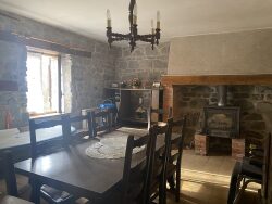 Maison en pierre avec grange type auvergnate et garage attenants.