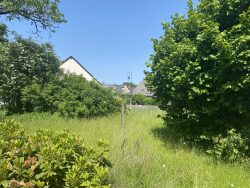 A l'étage mansardé, 2 chambres, un bureau, salle de bains et wc. Jardinet de l'autre côté de la route.