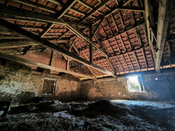 Sur la commune de Génis en Dordogne, à proximité du château de Hautefort, ensemble en pierre comprenant une belle grange traditionnelle, une seconde grange, une petite fermette sur cave, un four à pain et un puits. Le tout fait face à un terrain d'environ un hectare et bénéficie de jolies vues sur la campagne. La grande grange : toiture tuiles mécaniques en plutôt bon état (quelques tuiles à replacer). La charpente est en très bon état. 3 ouvertures sur la façade avant, 2 sur la façade arrière. Plancher de l'étage à changer. Eau et électricité présents. Petite grange : couverture à changer entièrement. Charpente semble en état correct. Fermette et four à pain à réhabilité entièrement.