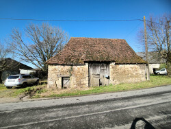 In the village of Génis in Dordogne, not far from the Château of Hautefort, this stone property consists of a beautiful traditional barn, a second barn, a small farmhouse built on a cellar, a bread oven and a well. The whole faces a plot of land of approximately one hectare and benefits from lovely views of the French countryside. The large barn : mechanical tile roof in rather good condition (some tiles to be replaced). The frame is in very good condition. 3 openings on the front facade, 2 on the rear facade. Floor of the upper floor to be changed. Water and electricity present. Small barn : roof to be completely changed. Frame appears to be in good condition. Farmhouse and bread oven to be completely renovated.