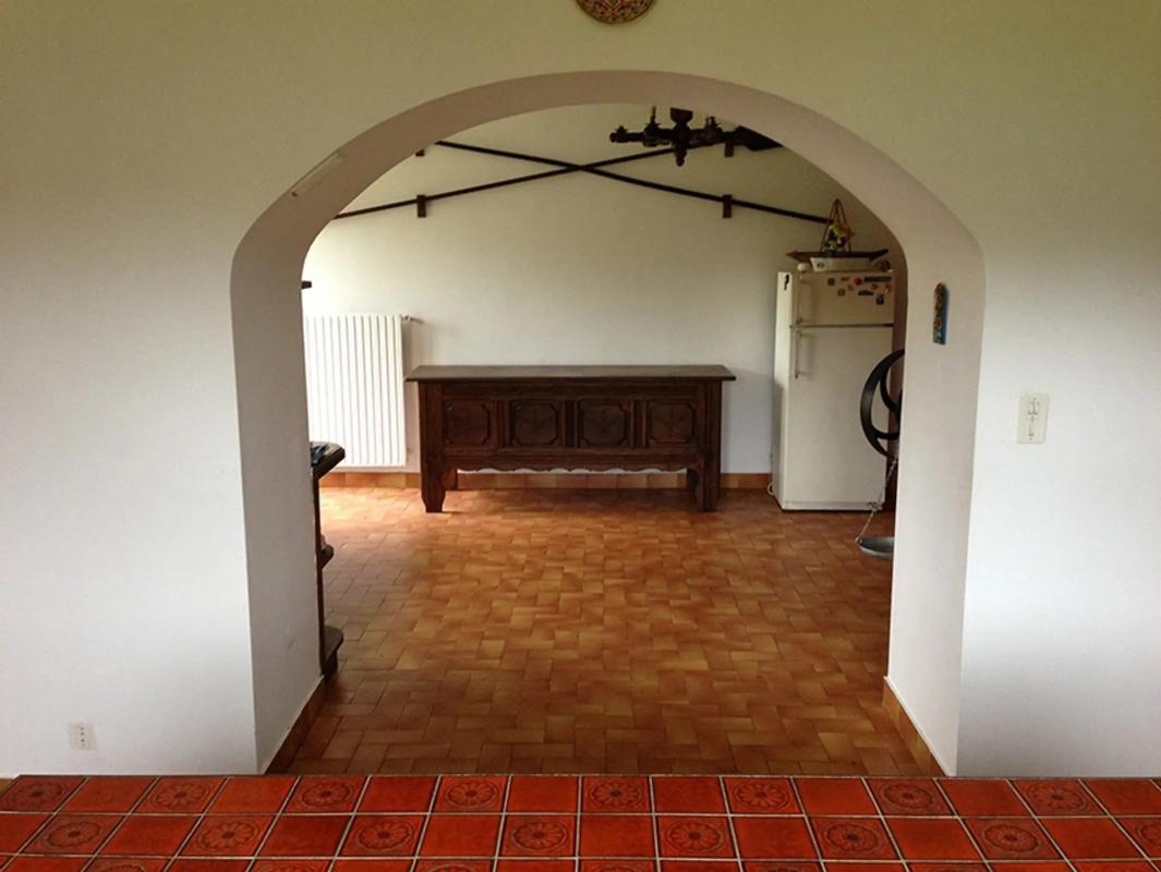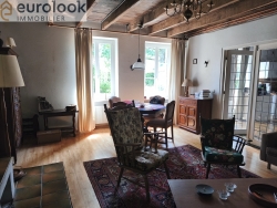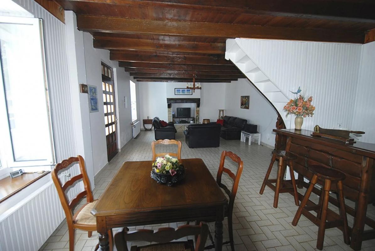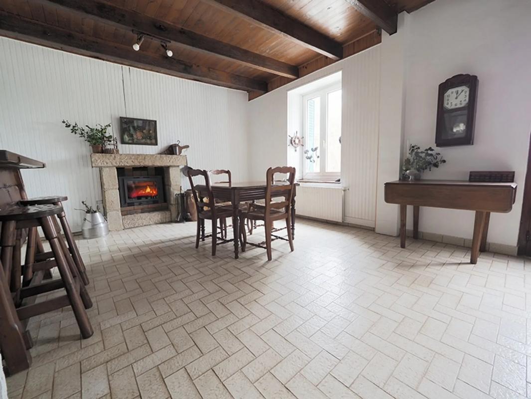 REF 3439 TRES BEL ENSEMBLE DE DEUX HABITATIONS EN PIERRE DU PAYS : La Maison principale comporte au Rez-de-chaussée : cuisine aménagée avec espace repas et cheminée, un salon avec cheminée également, à suivre une grande pièce à usage actuel d'atelier avec à suivre une autre pièce où se situe la chaudière à gaz., Salle de bains et douche , Buanderie avec W.C. ( branchement à finaliser). Etage : une très grande pièce aménagée en vaste chambre avec cabinet de toilette (vasque + WC) plusieurs ouvertures sont déjà créées.