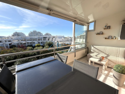 Bel appartement 2 pièces rénové au Couchant de 38 m2 habitables (28 m2 carrez + loggia vitrée de 10 m2) au 3ème et dernier étage avec ascenseur - Appartement lumineux, exposé Sud Est, avec vue agréable sur les espaces verts de la copropriété - Plages du Couchant à quelques minutes à pied - Agencement fonctionnel : entrée avec rangements, chambre, salle d'eau/toilettes, pièce de vie avec cuisine ouverte, grande loggia vitrée pour plus d'espaces utilisable toute l'année - Garage d'environ 14 m2 dans la résidence, accès par ascenseur - Résidence bien entretenue sans travaux de copropriété. Les informations sur les risques auxquels ce bien est exposé sont disponibles sur le site Géorisques : www. georisques. gouv. fr Vous voulez plus d'informations ? Appelez moi : Sophie 06 87 83 40 10. Notre agence immobilière se tient à votre disposition pour tout achat, vente, location ou estimation d'appartement, de maison ou villa sur La Grande Motte. LES PYRAMIDES IMMOBILIER - 277 ave Robert Fages - CC Le Miramar. Estimations gratuites et sans engagement.