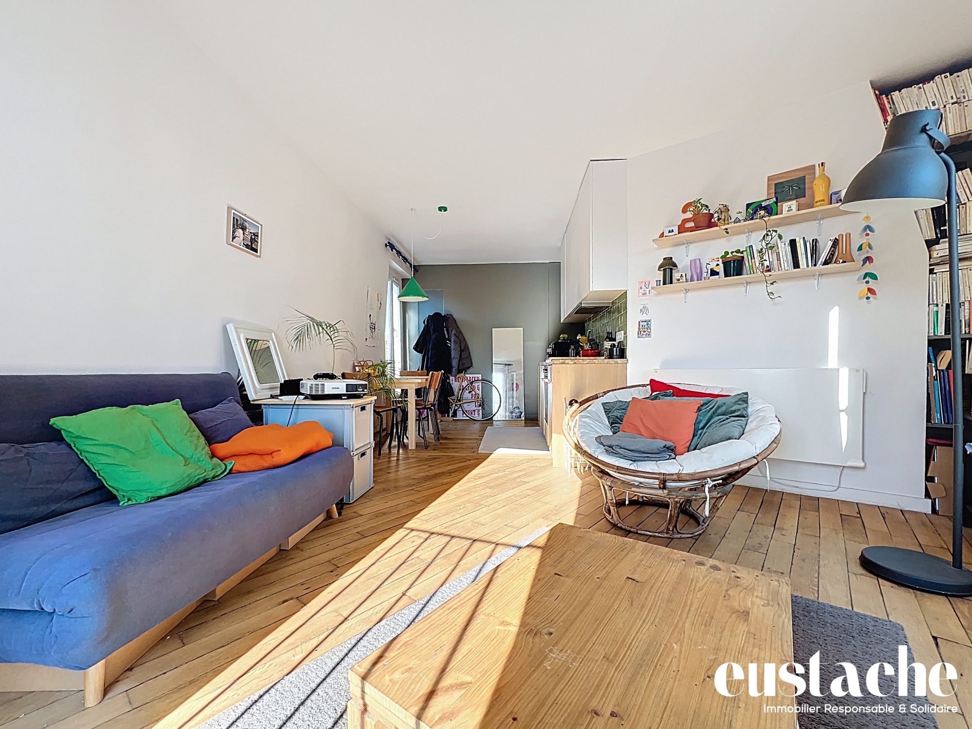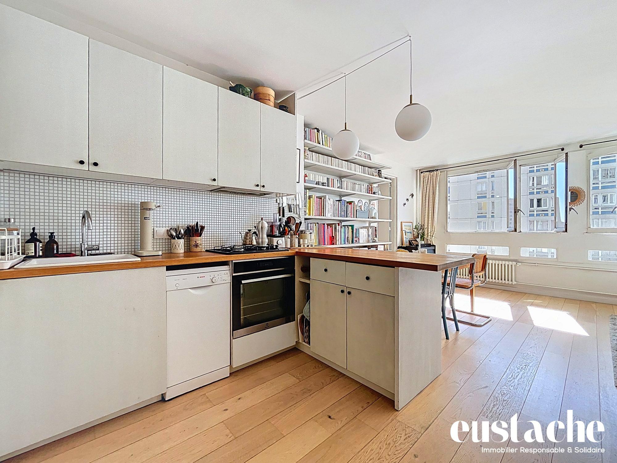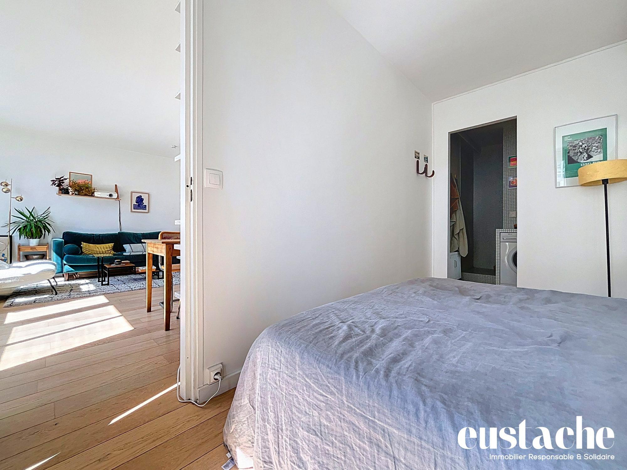 Paris 19ème, au coeur de Belleville, entre les métros Belleville et Pyrénées. Appartement 2 pièces de charme de 43,19 m² donnant sur jolie cour. Séjour de 21 m², cuisine aménagée avec fenêtre, chambre, salle de bains avec fenêtre, wc séparés. Parquet, moulures, cheminée. Calme et lumineux. Cave. Coup de coeur assuré !
