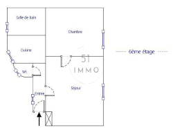 51 Immo vous propose en exclusivité un magnifique 2 pièces sans vis-à-vis, avec accès à une terrasse, au sein d'une belle copropriété. Cet appartement comprend un beau séjour (15m²), une chambre (10,5m²), une cuisine séparée et équipée ainsi qu'un WC et une cave de 4m². Magnifique parquet au sol, très belle hauteur sous plafond et exposé plein sud. Idéal premier achat ou investissement locatif (1.100€/mois)