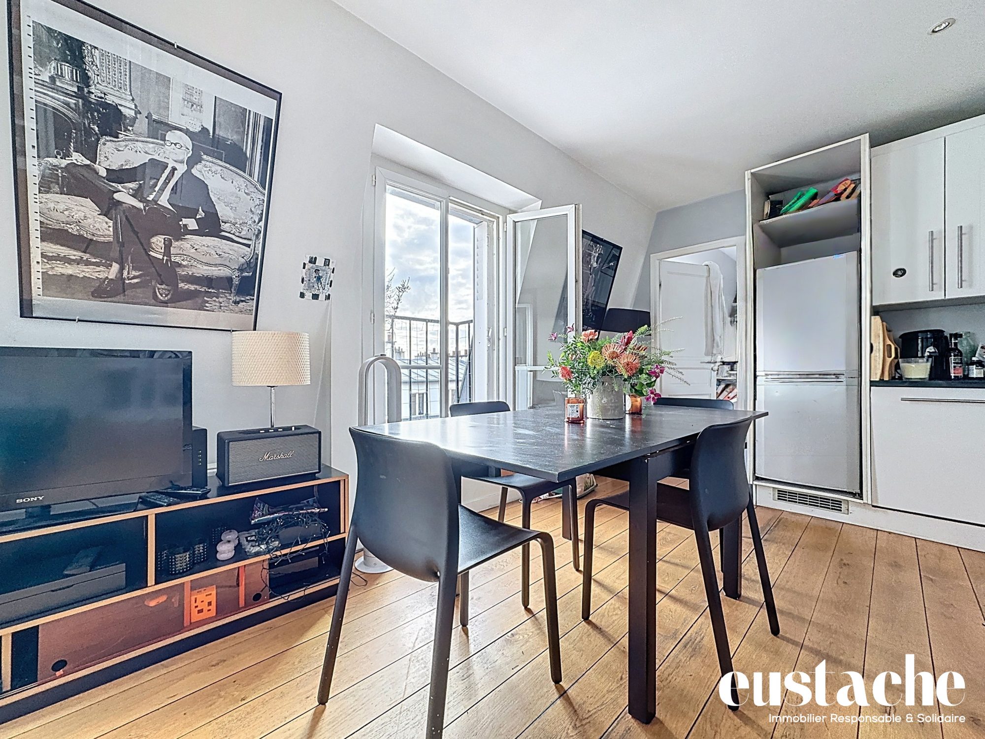 En plein coeur du Marais, rue des Archives, proche Hôtel de Ville et Beaubourg, très bel appartement entièrement rénové et conçu par un architecte. Situé au 4ème étage AVEC ascenceur, d'un immeuble pierre de taille. Vaste 2 pièces de 56,11m2 Carrez, ll comprend : une entrée dotée d'un superbe mur en pierres apparentes, un beau séjour double de 27m2 avec 2 fenêtres sur rue, exposé Ouest et une cuisine américaine entièrement équipée et aménagée avec une fenêtre sur courette, une suite parentale de 15m2 sur cour arborée au CALME, offrant un très grand dressing et une spacieuse salle d'eau ouverte sur la chambre et avec fenêtres, un WC séparé avec lave mains. Plan rationnel, le tout dans une copropriété de standing au sein d'un quartier animé. Une cave au sous-sol complète ce bien de qualité. Volets métaliques aux fenêtres. Tous les matériaux sont nobles et contemporains. Coup de coeur assuré pour ce bel appartement. 1 place de parking à vendre en option à proximité. Copropriété : 37 lots dont 13 lots principaux. Quote-part budget prévisionnel annuel : 2020 euros. DPE nouveau 2026 Classe d'énergie G (452kWh/m2an d'énergie primaire soit 238kWh/m2an d'énergie finale) / GES C (0kgCO2/m2an) / estim. 2320 à 3190EUR prix moyens des énergies indexés sur années 2021, 2022 et 2023, abonnements inclus dit ' logement à consommation énergétique excessive'. 'Les informations sur les risques auxquels ce bien est exposé sont disponibles sur le site Géorisques : www.georisques.gouv.fr'. Prix affiché honoraires inclus à 3.99%TTC. Agence Arc-en-Ciel Immo sur rendez-vous personnalisé du lundi au samedi Tel 01.71.18.28.60 (transféré vers nos téléphones portables) info@arc-en-ciel-immo.com - www.arc-en-ciel-immo.com