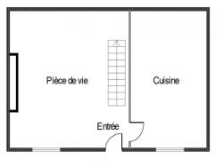 Entrée sur salon séjour , cuisine aménagée et équimée.