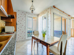 Visite 3D sur demande! L'agence Aixty à le plaisir de vous proposer en exclusivité cet appartement de type T3 de 72 m² situé dans une résidence au calme et à proximité de toutes commodités. Il vous séduira par sa fonctionnalité car il dispose d'un accès avec ascenseur, d'un garage fermé en sous-sol, de volets roulants électriques dans le séjour, d'un cellier sur le palier et de la fibre optique. Vous aurez également la possibilité d'installer une climatisation. Situé au 4ème étage, il est traversant avec une exposition Sud-Est au niveau de la pièce à vivre et Nord-Ouest au niveau des chambres. Vous bénéficierez d'une entrée avec placards, d'un joli séjour donnant accès à une terrasse, d'une grande cuisine semi-ouverte sur le séjour et disposant d'un deuxième coin extérieur. Dans la partie nuit, deux chambres, une salle d'eau et un WC séparé. Le chauffage est individuel au gaz. Charges: 136 euros/mois et comprennent l'eau froide, syndic, ascenseur, femme de ménage, espaces verts. Copropriété de 98 lots d'habitation, pas de procédure en cours DPE : C GES : C "Prix honoraires frais d'agence inclus" : 325 000 euros à la charge de l'acquéreur RCS Aix 814 576 997 00021 (4.84 % honoraires TTC à la charge de l'acquéreur.) Copropriété de 98 lots.