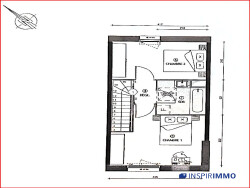 À l'étage : deux chambres (13 m² et 10 m²) et d'une salle de bain avec baignoire et wc.