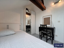 Au deuxième étage sans ascenseur, appartement 3 pièces meublé d'une surface de 58,69 m² et d'une surface habitable de 37,66 m², comprenant une cuisine aménagée et équipée ouverte sur le séjour, deux chambres, une salle de douche avec machine à laver, ainsi qu'un WC séparé.