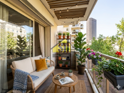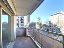 Exclusivité Groupe STI. Quartier Montparnasse, dans un immeuble moderne de standing avec gardien, au 4ème étage (asc), bel appartement comprenant : Double séjour de 30 m2 ouvert sur un grand balcon / terrasse, 2 chambres, salle de bains, wc, cusine, entrée avec nombreux placards. Très lumineux, belle vue dégagée, fonctionnel, beaux volumes. Une cave complète ce bien. Parking possible. RARE.