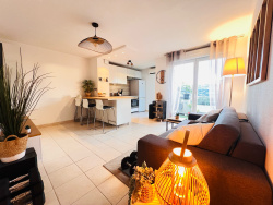 Il se compose comme suit : - Un salon avec sa cuisine américaine ouverte sur séjour - Deux chambres avec placard intégré - Une salle de bain - Un wc avec son lave main - Une belle terrasse avec sa vue dégagée sur les montagnes