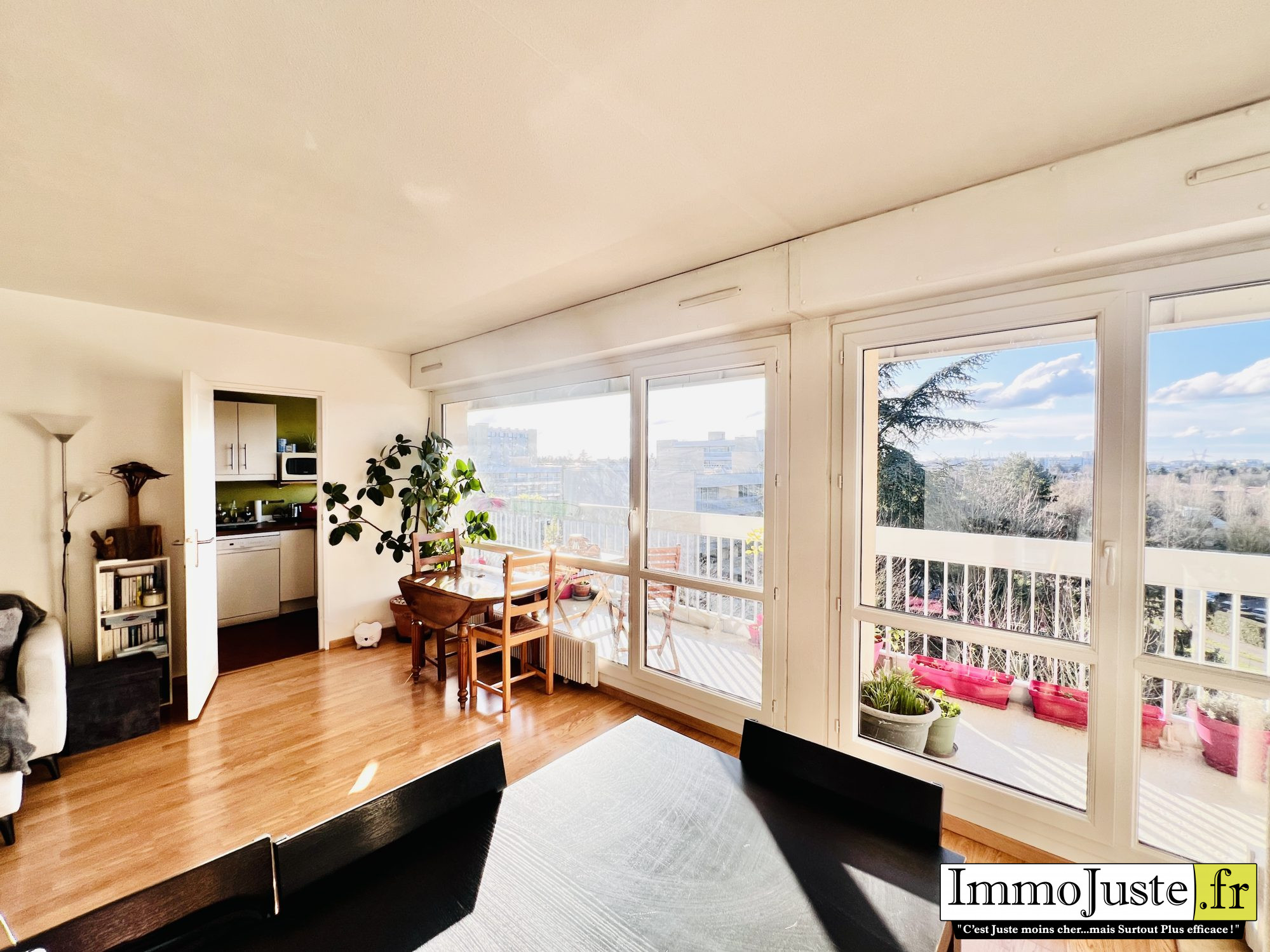Il offre une entrée avec un grand placard, des wc indépendants, un séjour de 28 m² exposé Sud-Ouest ouvrant sur un blacon, une cuisine ouverte aménagée et équipée.