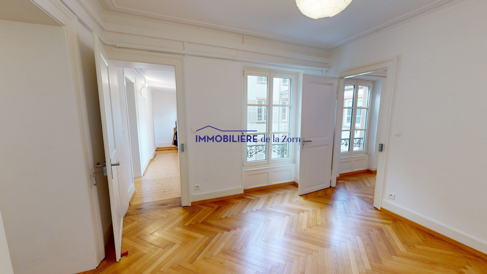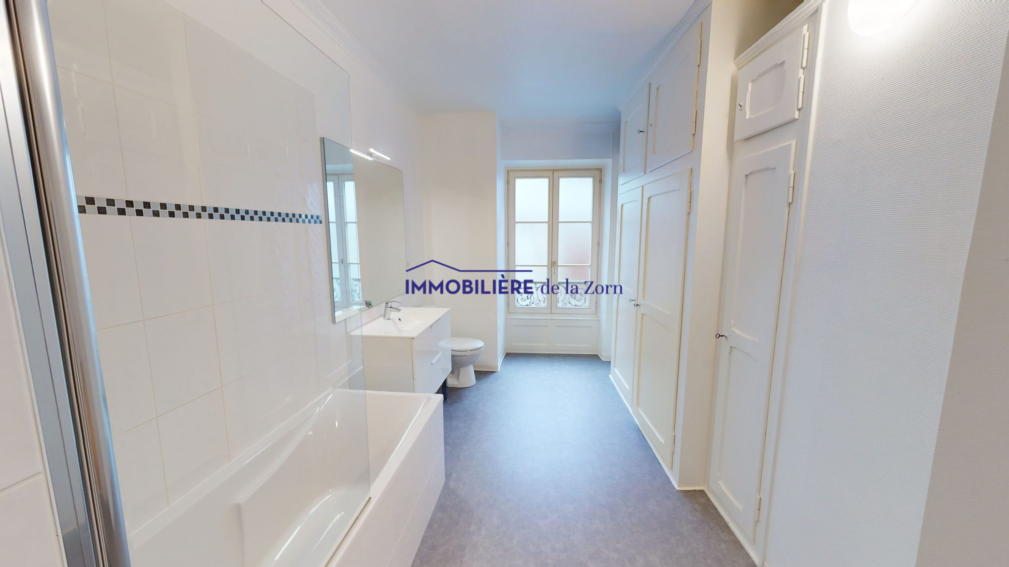 Au 1, quai Kléber : très beau et spacieux 3 pièces de 112 m2 au 2ème étage sans ascenseur comprenant : une entrée et couloir avec placard, un salon avec balcon, 2 chambres, une cuisine aménagée, une salle de bains, un W.C. séparé avec lave-mains. Belle hauteur sous plafond - Immeuble ancien avec cachet - Moulures au plafond. Proximité gare-centre-ville-tram.
