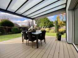 - Terrasse équipée d'une pergola avec volets électriques.