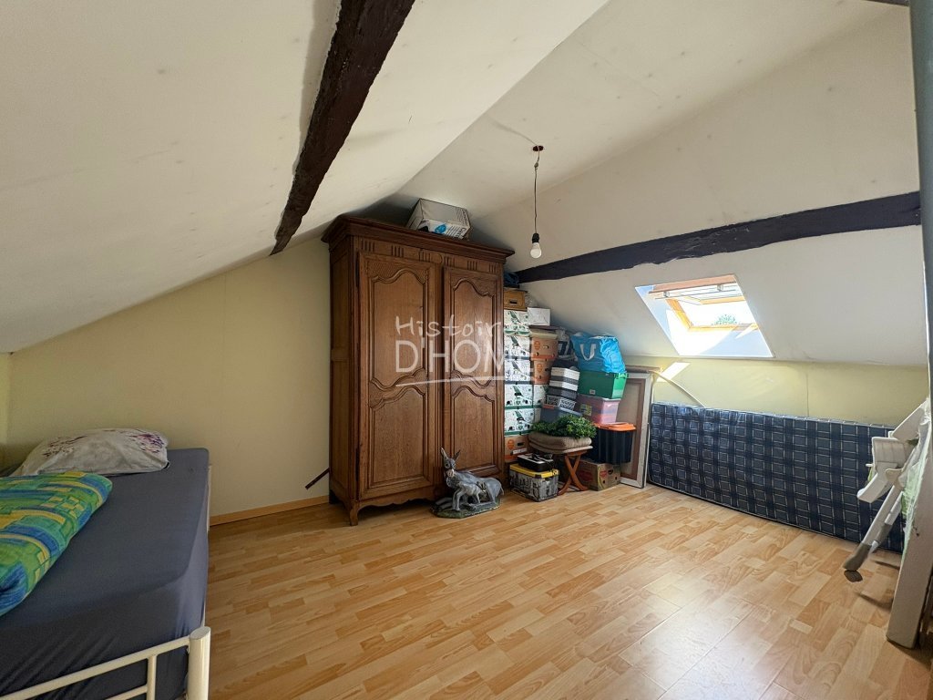 En EXCLUSIVITÉ dans votre agence HISTOIRES D'HOME. Maison élevée sur sous-sol total comprenant au rez-de-chaussée : Une cuisine aménagée, Pièce de vie avec poêle à granulés et balcon, dégagement, deux chambres, une salle d'eau et un WC séparé.