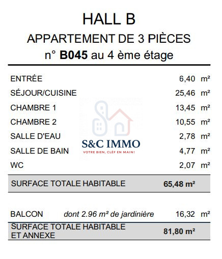 ...Il est composé de :- un séjour d'environ 25 m²- 2 chambres d' environ 12 m²- une cuisine...