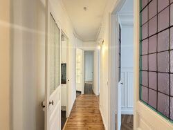 AVENUE MOZART 75016 PARIS - À 5 minutes à pied des stations Jasmin (métro ligne 9) et Michel-Ange Auteuil (métro lignes 9 et 10), au 4e étage d'un immeuble haussmannien, bien entretenu avec ascenseur et gardienne, un 4 pièces traversant et refait à neuf, comprenant : une entrée, un couloir, un séjour de presque 19m2 avec balcon, une salle à manger de 15m2 (pouvant faire office d'une 3e chambre), une chambre sur rue avec placard intégré, une chambre sur cour avec meuble dressing et salle d'eau, une cuisine aménagée, une salle de bains et un WC séparé. Au sous-sol, une cave portant le n°12 complète ce bien.