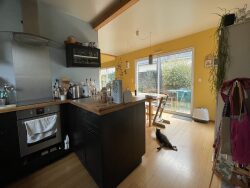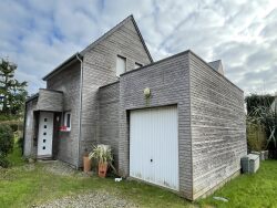 Maison contemporaine en bois de 2014 d'une superficie de 98 m², construite sur un agréable jardin de 560 m². Elle se compose au rez-de-chaussée : grande entrée, cuisine aménagée et équipée ouverte sur le salon - salle à manger avec baie coulissante donnant accès à une terrasse orientée au Sud (poêle), une chambre avec salle d'eau privative, toilette sèche (possibilité de raccordement au réseau), cellier, accès au garage 1 VL. A l'étage : mezzanine, 2 chambres, salle d'eau et possibilité d'un second w-c. L'ensemble se trouvant dans un bon état général.