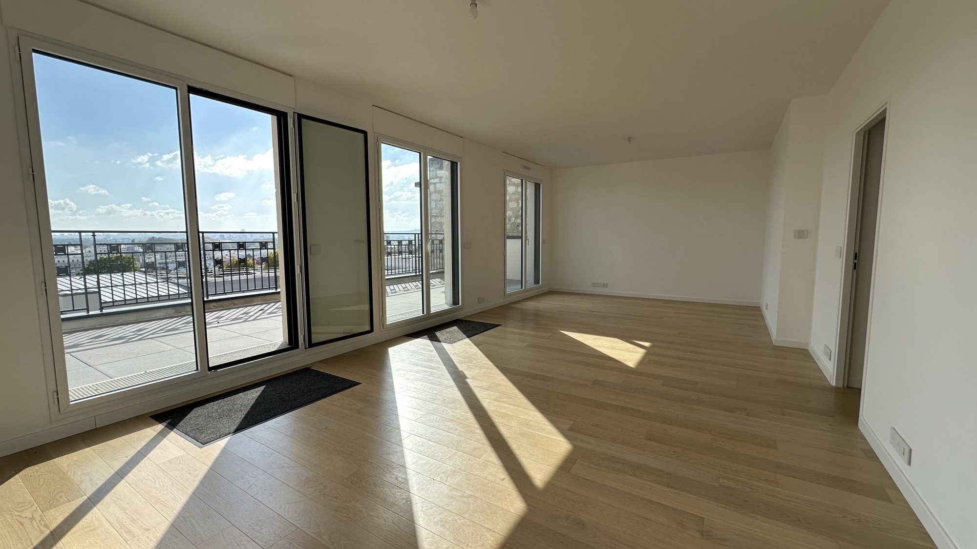 Rare!! Dans le quartier recherché République, magnifique appartement de 5 pièces d'environ 103 m² avec une grande terrasse de 38m² environ, en excellent état, idéalement situé dans une résidence de standing livrée en 2024. Il se compose d'une entrée avec rangements, un WC avec lave mains indépendant, un vaste séjour d'environ 40m² donnant sur une grande terrasse de 38m² orienté Sud-Est avec vue panoramique vers Paris et la tour Eiffel, une grande cuisine de 11m² donnant sur le séjour avec un accès à la terrasse , 3 chambres avec placards/penderies dont une suite parentale avec une salle de bains attenante avec WC et un espace buanderie. et une chambre avec une salle de douche avec WC. Le tout complété par un parking et une cave (possibilité 2 places de parking côte à côte). Domotique, volets électriques, chauffage et rafraichissement par plancher réversible alimenté par pompes à chaleur. A proximité des écoles, commerces et transports (à 7 mn à pied du Tram T2 Suresnes-Longchamp).