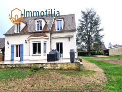 Proche BRAY-SUR-SEINE (77480), à 2 mn de ses commerces et écoles, sur 1 825 m2 de jardin entièrement clos, 185 m2 habitable, BELLE PROPRIÉTÉ RÉCENTE de 2004, offrant de belles pièces spacieuses avec tout le minimum de plain-pied, très beaux volumes, vaste salon-séjour de 50m2, 5 chambres, tout confort, comprenant au rez-de-chaussée : Hall d'entrée cathédral, cuisine aménagée et équipée (éléments hauts et bas, plaque induction, hotte, four, réfrigérateur, lave-vaisselle, porte fenêtre sur terrasse), séjour-salon (conduit de fumée), dégagement, chambre, salle d'eau, WC; à l'étage : palier-couloir cathédral, 4 chambres cathédrales, salle de bains, WC: au sous-sol total compartimenté : cellier, vastes buanderie, atelier et chaufferie. Terrasse carrelée, abri pour 2 VL. Chauffage par pompe à chaleur air / eau, huisseries et volets roulants neufs. Assainissement conforme (micro-station neuve). Les informations sur les risques auxquels ce bien est exposé sont disponibles sur le site Géorisques : www.georisques.gouv.fr