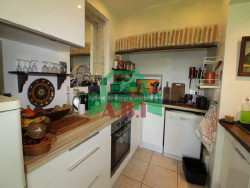 2-) Seconde maison (env 90m2 hab) : Double vitrage - entrée - seconde entrée sur spacieuse pièce de vie/Cuisine (env 40m2) - conduit de cheminée tubée avec cuisinière à bois ; WC. Etage : palier, 2 Chambres (env 18,70 et 19m2) ; Salle d'eau avec grand bac à douche. Grenier au-dessus aménageable sol tommettes accessible par un escalier.