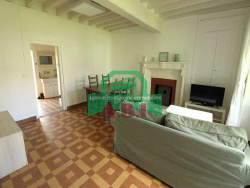 Au RDC : entrée, pièce de vie(env 19m2), Cuisine aménagée (env 11m2) accès jardin - atelier/remise traversant avec WC (env 18m2) et un garage/grange (env 20m2).