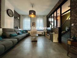 Caudry centre. Maison de ville de 166 m² avec 6 chambres et laboratoire de cuisine. Cette maison comprend au rdc : Hall d'entrée, salon - séjour ouvert sur cuisine américaine aménagée et équipée, buanderie, wc, cave. 1 er étage : Palier, 3 chambres, salle d'eau avec wc. 2 ème étage : Palier, 3 chambres et salle de bains avec wc. Extérieur : Terrasse, cour exposé plein sud, laboratoire de cuisine de 33 m² avec accès indépendant de la maison avec accès piéton ou deux roues par l'arrière. Cc gaz, double vitrage pvc.