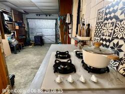 Un garage avec arrière cuisine.