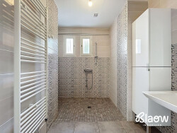 Agencée principalement de plain-pied, elle propose un cadre de vie fonctionnel et agréable. Vous trouverez sur ce niveau deux belles chambres confortables de 12,89 m² et 19,28 m², une pièce de vie lumineuse de 23,48 m² donnant sur la terrasse carrelée, une cuisine indépendante de 9,5 m², une salle d'eau, un WC séparé ainsi qu'une buanderie, pratique pour le quotidien.
