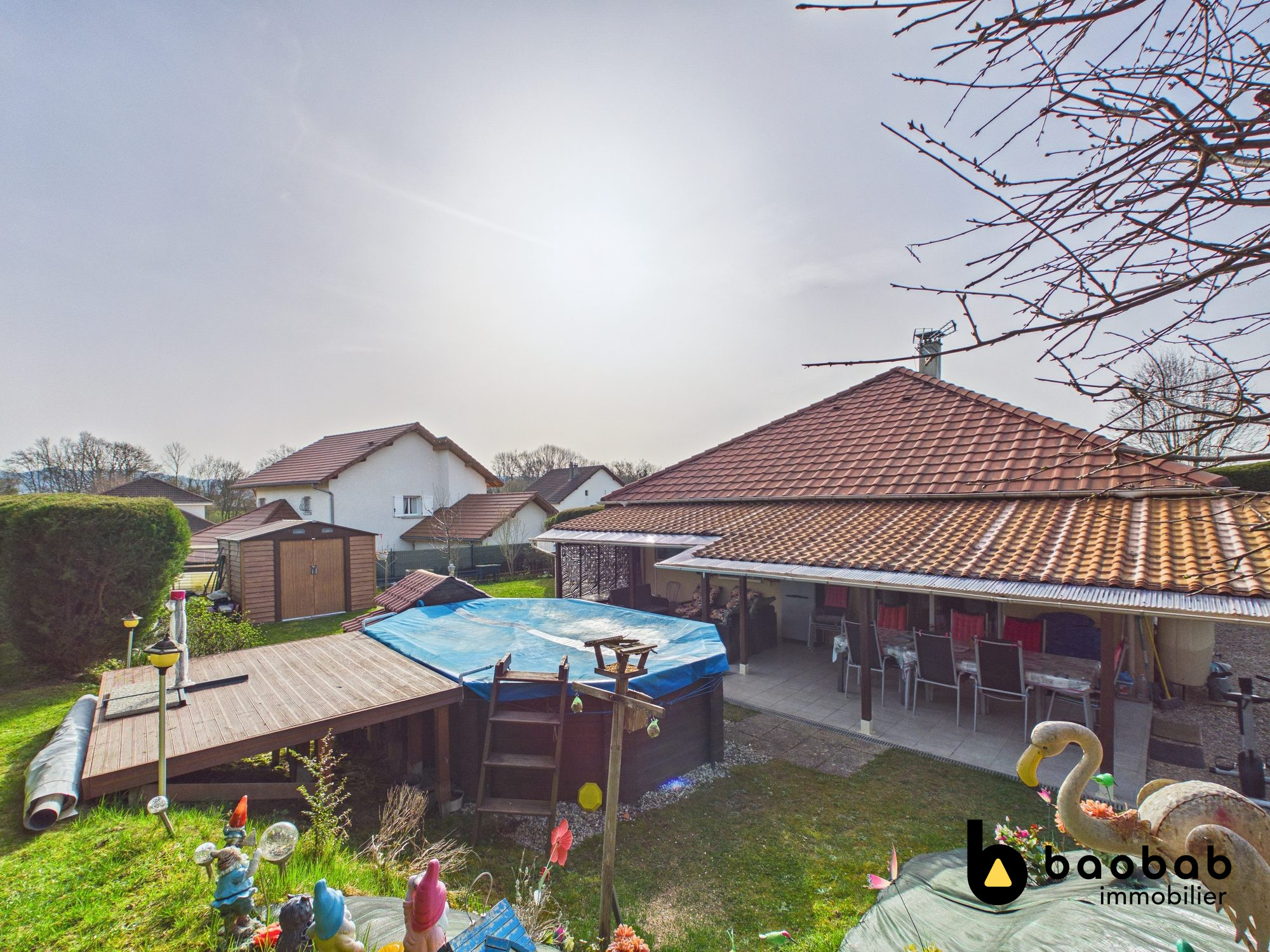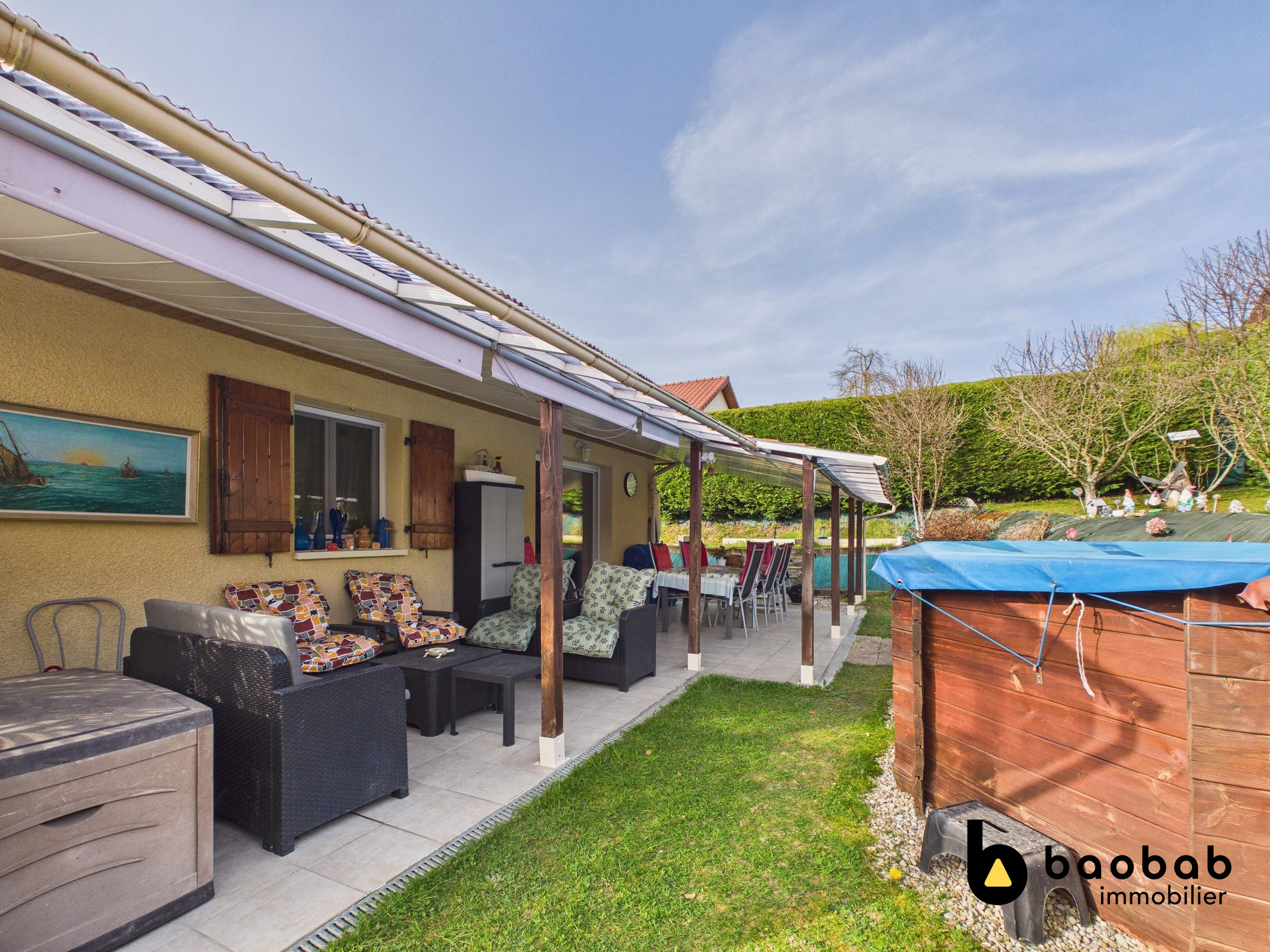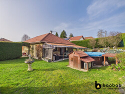 Construite avec des matériaux modernes et de qualité, la maison bénéficie de prestations soignées conformes à la réglementation thermique RT 2012, garantissant confort, performance énergétique et durabilité. Les menuiseries aluminium équipées de volets roulants, associées aux larges ouvertures vitrées, apportent une luminosité exceptionnelle et renforcent le caractère contemporain du bien. La toiture en bac acier gris anthracite ainsi que le bardage aux lignes épurées soulignent l'esthétique architecturale moderne de la propriété. Grâce à sa superbe terrasse d'environ 50 m2, véritable atout du bien, idéalement exposée sud-ouest et face à la vallée, vous profiterez d'un espace de vie extérieur privilégié pour profiter des repas en famille, des moments de convivialité ou simplement du panorama sur les montagnes. À l'intérieur, la maison offre des volumes remarquables, notamment grâce à un séjour avec plafond cathédrale qui accentue la sensation d'espace et de lumière. Les grandes ouvertures permettent de profiter pleinement de la vue sur la vallée et les montagnes environnantes. Une mezzanine surplombant la pièce de vie offre de nombreuses possibilités d'aménagement : espace bureau, coin lecture, chambre supplémentaire ou espace détente selon les envies des futurs propriétaires. À l'extérieur, la propriété offre un bel espace permettant d'imaginer différents aménagements paysagers. Le terrain permet notamment d'envisager l'installation d'une piscine, d'un espace détente ou encore d'un jardin familial. Un espace de stationnement extérieur complète le bien, avec la possibilité d'aménager un appentis permettant d'abriter les véhicules. Cette propriété rare combine ainsi architecture contemporaine, emplacement stratégique et fort potentiel d'aménagement, que ce soit pour une résidence principale moderne ou un projet d'investissement. Un bien rare sur le secteur, offrant un cadre de vie moderne et lumineux à proximité immédiate de toutes les commodités. À découvrir sans tarder.