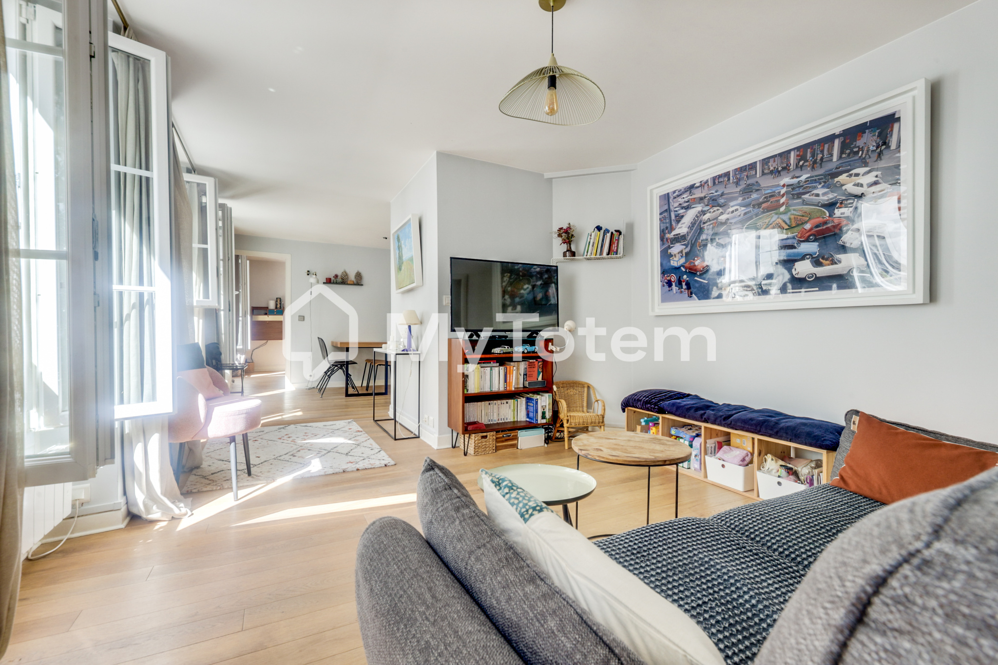 75011-GONCOURT-Exclusivité KMI- Rue du faubourg du temple 3 pièces +cave avec charme de l'ancien. Situé à Paris 11ème, rue du Faubourg du Temple, dans un secteur très recherché, nous vous proposons ce joli 3 pièces au calme se trouve au 3ème étage d'un immeuble ancien donnant sur une charmante cour. L'appartement se compose d'une entrée, d'un vaste double séjour lumineux avec cuisine américaine entièrement rénovée, de deux chambres spacieuses, dont une sur cour, d'une salle d'eau rénovée récemment, ainsi que de WC séparés. Vous serez séduit par ses beaux volumes, ses poutres apparentes et ses tommettes d'origine, sa luminosité constante grâce à sa triple exposition, et son cachet authentique. Une cave complète ce bien.Local à vélos dans l'immeuble. Ravalement récent.
