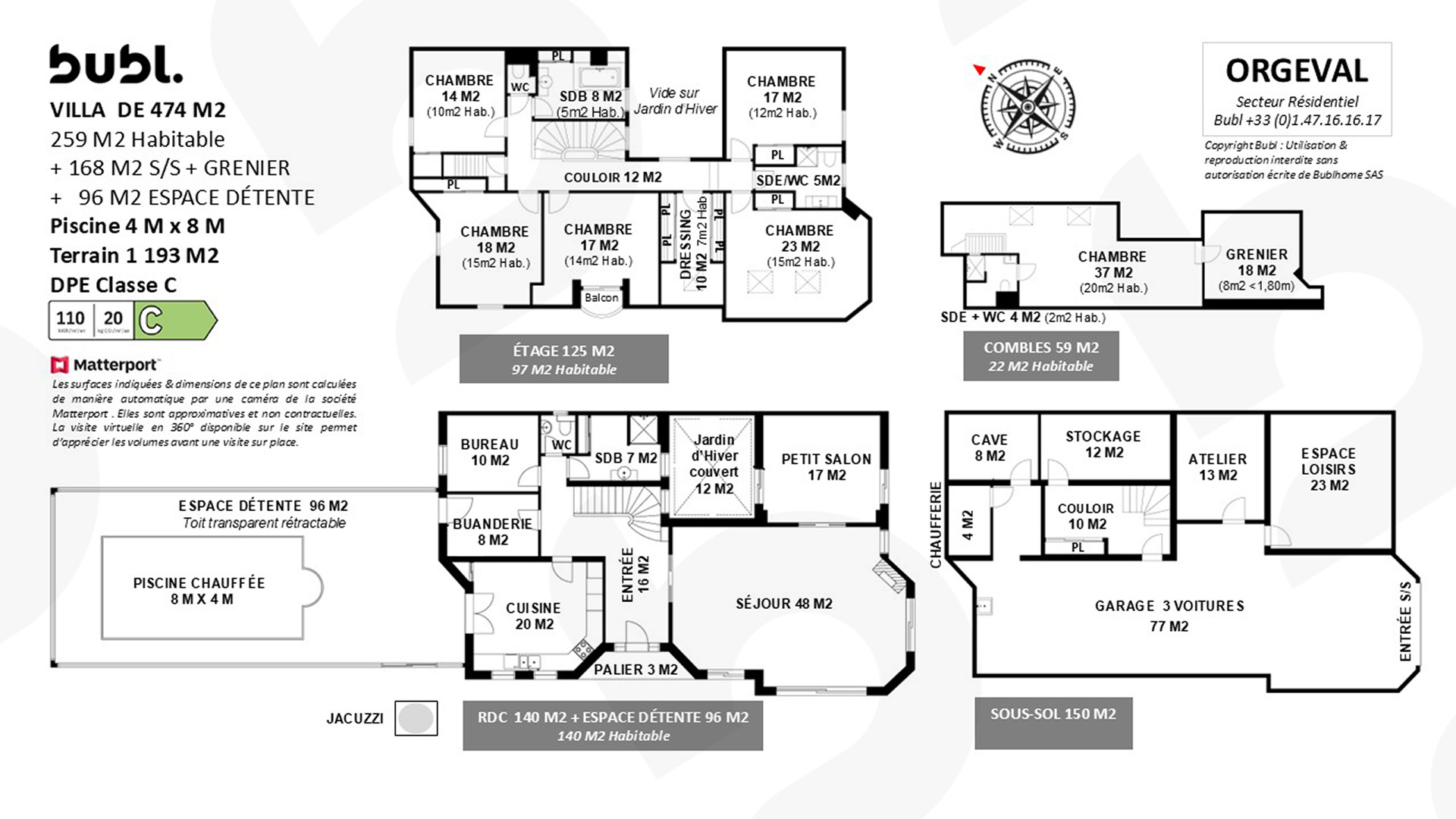 Emplacement privilégié et très recherché. Située à proximité du Lycée International de Saint Germain-en-Laye et du lycée collège privée Notre Dame (très bien classé nationalement avec une section Bilingue), à 10 minutes à pied de la forêt de Saint-Germain, l'agence Hamilton in Paris vous propose en exclusivité cette spacieuse maison familiale de 1950 lumineuse de 210m² sur 3 niveaux plus sous-sol total, très bien entretenue. Le tout sur un jardin d'environ 570m² orienté sud. Garage et bornes électriques pour 2 voitures Au rez-de-chaussée : Une entrée dessert une vaste, spacieuse et lumineuse triple réception ouvrant sur une belle terrasse exposée sud / Est, surplombant un beau jardin arboré sans vis à vis. Une cuisine séparée, équipée et aménagée avec vue sur le Parc du château. Au 1er étage : Une maxi bedroom avec espace bureau, et sa salle de bain double vasque, le tout éclairé par de vastes fenêtres d'angles surplombant le jardin. Deux autres chambres avec placard, une salle d'eau et WC séparés complètent cet étage. Au 2éme et dernier étage, un salon/salle de jeu desservant la 4eme et 5ème chambres ainsi qu'une autre salle d'eau et WC. Chaque Velux est équipé de Stores électriques. LE MUST : Un très bel espace détente avec son Jacuzzi intégré et son Sauna - Salle d'eau et WC, ouvrant sur le jardin. Un sous-sol total avec garage fermé, buanderie et pièces à usage multiple (atelier, cave à vin). Une batisse en excellent étant, ou chacun y trouvera son espace et sa tranquillité. Une trés jolie allée de garage, végétalisée et fleurie. Chauffage individuel au gaz. Emplacement pour 2 voitures avec bornes de recharge électrique. Transport à proximité : bus (1255, 6281) et RER A à 10/15 minutes. Proximité Autoroute A14. Établissements scolaires : lycée International de Saint Germain avec sa section chinoise, Sciences Pô Saint Germain, lycée collège privée Notre Dame très bien classé nationalement , section Bilingue, Cambridge... À visiter sans tarder.