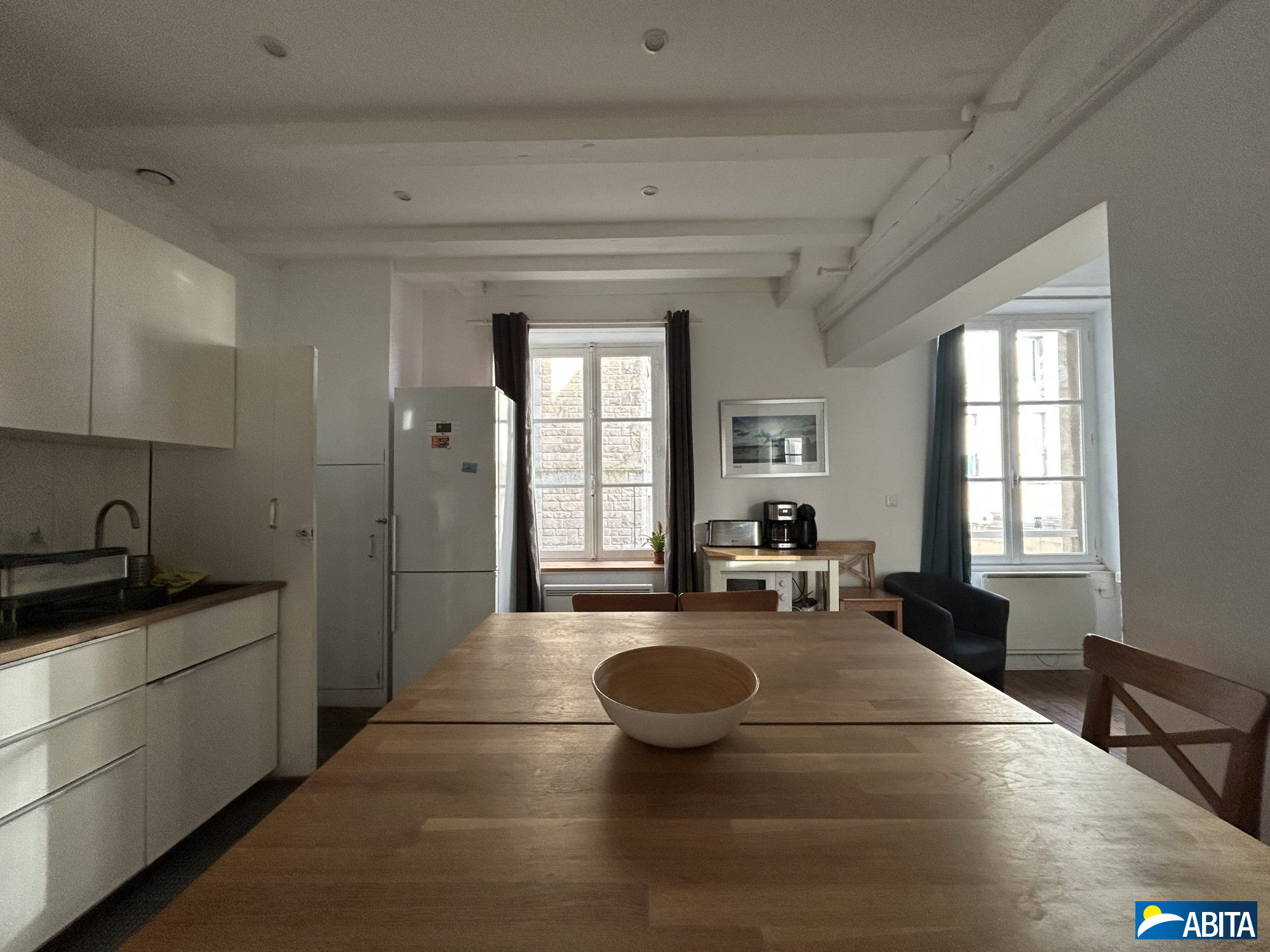 EXCLUSIVITE - Saint-Malo Intra-Muros, au 2ème étage avec ASCENSEUR, un appartement de 87m² à rénover comprenant : une entrée, un séjour avec balcon, une cuisine, deux chambres avec placards, un dégagement avec placards, une salle de bains et un wc séparé. Un grenier.