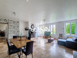Exposition plein-sud Pompe à chaleur gainable, toiture mécanique neuve, DPE : C Cuisine aménagée avec îlot central, comprenant four, plaque de cuisson, hotte, lave vaiselle.