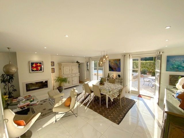 En exclusivité, l'agence Sindy Micots Immobilier vous propose, à seulement 10 minutes d'Uzès, au coeur d'un village avec commodités, un mas contemporain situé dans un quartier résidentiel. Au rez-de-chaussée, vous découvrirez un vaste espace de vie baigné de lumière grâce à une exposition sud-ouest, composé d'un salon avec cheminée, d'une salle à manger ouvrant directement sur une large terrasse, ainsi que d'une cuisine fonctionnelle entièrement équipée. Une suite parentale avec salle de bains privative complète ce niveau. À l'étage, le bien offre une chambre en suite ainsi que deux autres chambres se partageant une salle de bains, dont l'une dispose d'un dressing. Le jardin, entièrement clos, s'organise autour d'une piscine de 10 x 4 m et d'une terrasse avec cuisine d'été, permettant de profiter pleinement des extérieurs. Un garage carrelé et isolé vient parfaire l'ensemble. De nombreuses prestations de qualité (arrosage automatique, climatisation réversible, aspiration centralisée...) font de ce bien une propriété d'exception. contact@micotsimmobilieruzes.com 0675627663 Sindy Micots immobilier uzes