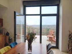 Cahors 46000 à 10 minutes, sur la commune du Montat, grange de plain-pied restaurée avec soin en 2023, environ 140 m², 3 chambres, sur parcelle de presque 5000 m², grande terrasse exposée au sud et très jolie vue dégagée.