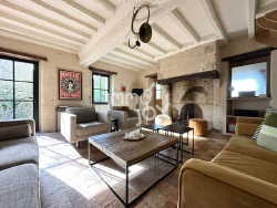 En début de hameau avec une vue dégagée, la maison de 260 m2 a été entirement rénovée à l authentique et se compose au RDC ( tomettes) d' une entrée de 5m2, une cuisine aménagée et équippée ( 16 m2), buanderie / chaufferie (14m2), salon avec cheminée (25 m2), petit salon (20,4 m2), salle à manger avec accès terrasse (20m2), chambre avec salle de bains privative ( 15m2 & 7.2 m2), dégagement ( 7 m2), wc, spa ( 19m2) avec douche.A l étage et par deux escaliers ( plancher chêne), 4 chambres ( 18m2,15m2, 12,8 m2, 28 m2) , 3 SDB (5.3 m2; 5,7 m2, 11,6 m2) , 3 wco. CC au gaz, DV aluminiun, assainissement aux normes, remise de 20 m2, jardin clos de 767 m2, terrasse. Cette annonce vous est proposée par IORSCH françois - EI - NoRSAC: 444 426 860, Enregistré à de