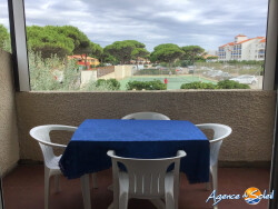 A 100 m des plages et des commerces de la place du Tertre, au 1er et dernier étage, duplex en T2 avec terrasse : vue dégagée; Pièce à vivre avec cuisine en accès direct sur la terrasse. Belle chambre en mezzanine. Bon état général. Parking nominatif et sécurisé. Agence du Soleil de Port Leucate : Pascale au 06 24 55 91 18