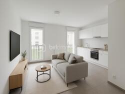 Un appartement de 3 pièces, au RDC surélevé , qui se compose : d'une entrée avec rangement, d'un séjour avec cuisine ouverte aménagée et équipée donnant sur un balcon, de deux chambres avec rangement, d'une pièce pouvant servir de dressing, d'une salle de bain et d'un WC séparé.