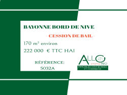 A CEDER DAB cause retraite Local commercial Bayonne bord de Nive traversant sur deux rues proposant 2 entrées distinctes. Surface de plus de 170 m² avec visuel et jolie façade sur les bord de la Nive. Petite restauration ne nécessitant pas de système d'extraction envisageable. Local avec travaux de mise en conformité et de rafraîchissement. Bail tous commerces. Loyer mensuel HT/HC 2 260 euros HT/HC. Référence:5032A « Les informations sur les risques auxquels ce bien est exposé sont disponibles sur le site Géorisques : www.georisques.gouv.fr ».