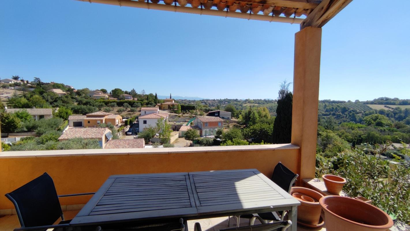 Une pièce de vie lumineuse ouvrant sur une véranda panoramique, où la vue sur Valensole s'invite comme un tableau naturel.