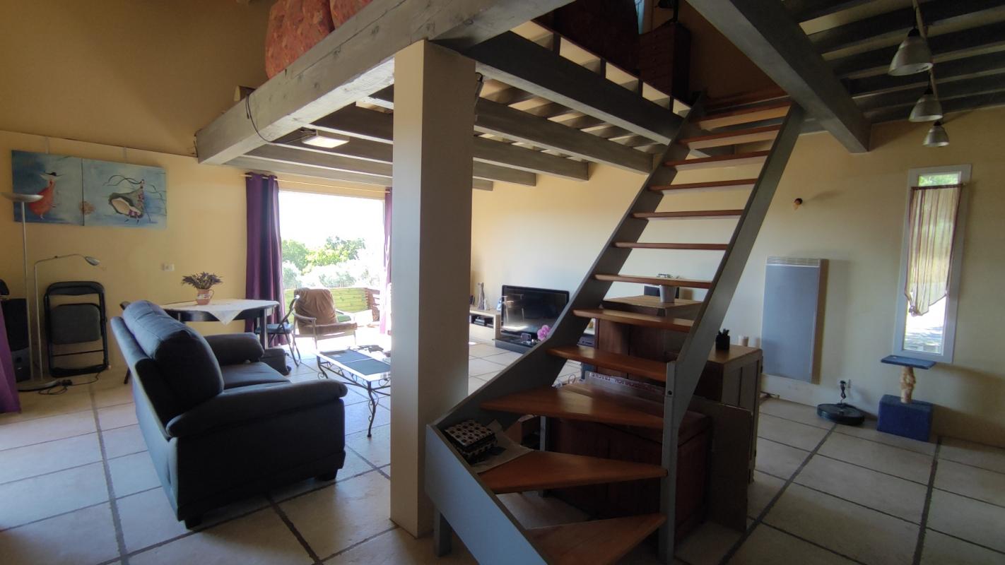 Une grande terrasse à l'étage, véritable espace de convivialité avec salon d'été et barbecue, accessible également depuis le jardin par un charmant escalier extérieur.