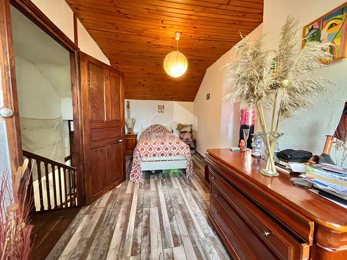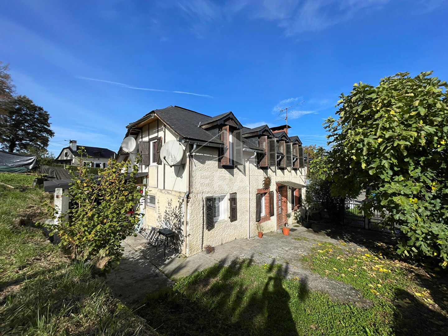Étages : espace salon/cuisine traversant, salle de bain fonctionnelle, 3 chambres, balcon