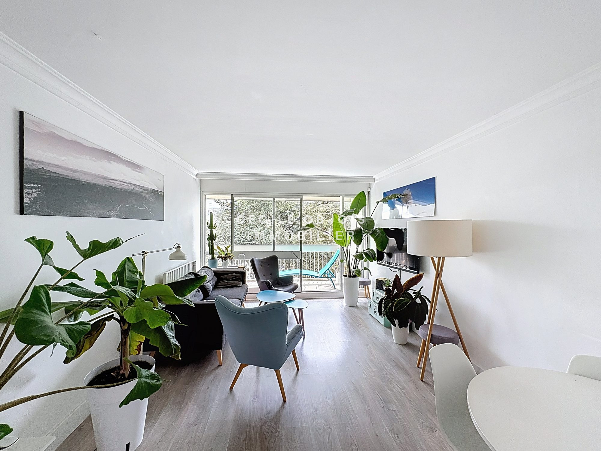 D'une superficie de 67,48 m² Loi Carrez, il offre une entrée, un séjour spacieux ouvert sur une salle à manger (avec possibilité de recréer une troisième chambre), une cuisine américaine aménagée et équipée, deux chambres, une salle de bains avec WC, ainsi que de nombreux rangements : placards, dressings et un cellier.