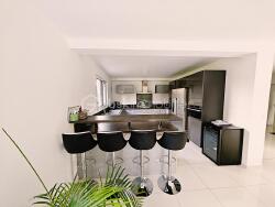 Dès l'entrée, vous serez séduit par les volumes généreux et la luminosité omniprésente. La pièce de vie de 57 m² baignée de lumière grâce à de larges ouvertures, offre une atmosphère chaleureuse et conviviale. Elle s'ouvre sur une belle terrasse équipée d'un store banne électrique, idéale pour vos moments de détente ou vos repas en extérieur. La cuisine aménagée et équipée s'intègre parfaitement à cet espace de vie.