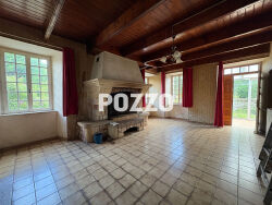 L'agence du Donjon vous propose cette maison de pays, couverte en ardoise, comprenant : - Au rez de chaussée: un séjour (d'env.27,80 m²) avec poutres apparentes, cheminée, un placard, une pièce (d'env. 10,40 m²) sur la gauche, à droite, une cuisine (d'env. 9,60 m²) aménagée et équipée d'un réfrigérateur et d'une gazinière, un coin évier avec placard, une salle d'eau/WC, une salle de bains, une pièce à usage de stockage. - A l'étage, aménagé en 2000 : placard sous mansarde, une pièce ouverte (d'env. 33 m²), une chambre (d'env. 30 m²) parquetée avec dressing et trappe accès escalier séjour. Assainissement: fosse septique hors normes. Huisseries: bois simple vitrage. Toiture: refaite en 2000. Un abri de jardin (d'env. 12,30 m²) sur le terrain clos et bordé d'un côté par un ruisseau. Le tout d'une contenance totale de 2 779 m². Pas de système de chauffage = pas de Dpe. Les informations sur les risques, auxquels ce bien est exposé, sont disponibles sur le site Géorisques : georisques.gouv.fr. Nous vous assurons les visites, la négociation, la rédaction du compromis de vente, et le suivi du dossier jusque la vente finale. L'Agence du Donjon est un professionnel de l'immobilier, avec pignon sur rue, à Saint Sauveur le Vicomte, à Bricquebec et à Portbail, depuis plus de vingt cinq ans. (5.43 % honoraires TTC à la charge de l'acquéreur.)