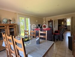 A moins d'une demi heure de Montaigu Vendée, La Roche sur Yon, les Herbiers et à un quart d'heure des Essarts en bocage et au beau milieu de sa parcelle de plus de 5000 m², découvrez cette maison de construction traditionnelle en briques et cloisons plâtrières offrant 128 m² habitables, environ 90 m² de garage, cave, chaufferie et annexes. Cette maison familiale parfaitement entretenue vous offre en rez de jardin, un hall d'entrée, un salon séjour, une grande cuisine familiale aménagée et équipée. Dans la partie nuit, dégagement avec placard, 3 chambres dont deux avec grand placard aménagé, une salle d'eau et un wc. Au sous sol, vous bénéficierez d'un double garage, d'une grande chaufferie buanderie avec évier, une cave et un grand bureau avec accès privatif. De nombreux travaux d'entretiens énergétiques ont été faits depuis moins de 10 ans, (ouvertures, isolation, VMC), les volets battants et roulants sont électriques, le compteur à été refait en 2010/2011. L'assainissement est aux normes. La maison est alimentée par un puits avec assainisseur d'eau mais le nécessaire a été fait pour se raccorder au service d'eau. Chauffage mixte fuel et bois. En plus ballon d'appoint électrique pour l'été. Terrain ouvert sur la campagne et en lisière de forêt. Quelques travaux de personnalisation à prévoir. Portail électrique pour le garage. Dépendances en ossature bois démontables de 2010 en tôle et bac acier d'environ 120 m² au sol dont la moitié environ en préau. Le tout alimenté en eau et électricité. Terrain aménagé et arboré, grand accès et parking. SAS REVO IMMO - ROUSSEAU Marina EI - O650 892 936 - Plus d'informations sur www.revo.immo (réf. 4901051204). Agent commercial RSAC LA ROCHE-SUR-YON 800 878 878 - Honoraires à la charge du vendeur - Les informations sur les risques auxquels ce bien est exposé sont disponibles sur le site Géorisques : https://www.georisques.gouv.fr/.